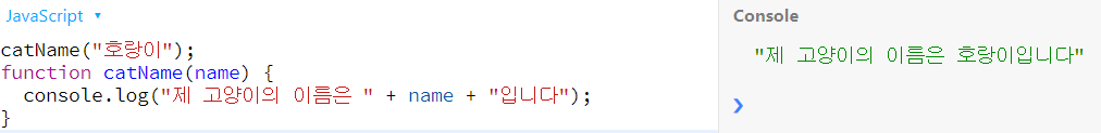 예제 1과 같이 JavaScript는 함수의 코드를 실행하기 전에 함수 선언에 대한 메모리부터 할당한다. 덕분에 함수를 호출하는 코드를 함수 선언보다 앞서 배치할 수 있다.