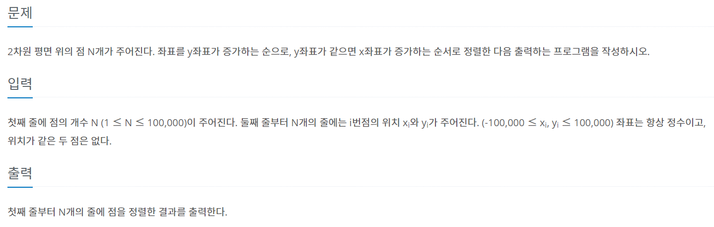 [Python] 백준 알고리즘 온라인 저지 11651 좌표 정렬하기 2