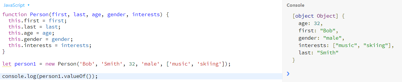 프로토타입을 통해 우리는 array를 다루는 sort, length와 같은 함수가 어떻게 동작하는 것인지 이해할 수 있다. 아래와 같이 나는 부모 객체에 valueOf라는 함수를 지정해 준 적이 없지만 콘솔에는 객체라는 value와 값들을 표시해준다. 즉 우리가 사용하는 내장 함수들은 프로토타입의 형태로 숨겨져 있다는 점을 배울 수 있다.
