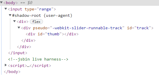 - HTML에 input 태그를 작성하면 아래와 같은 Output을 어떠한 방식으로 만들었느냐는 div태그 여러 개를 이용하여 Shadow-root안에 지정되어있다