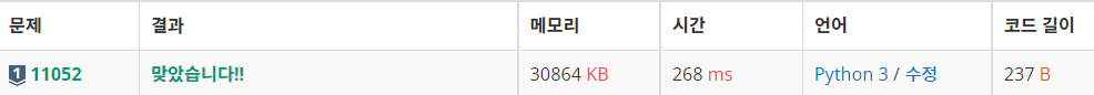 | 백준 11399번 ATM 파이썬 풀이 (0) | 2022.03.03 |