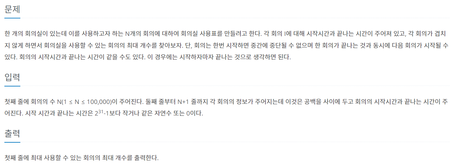 https://www.acmicpc.net/problem/1931