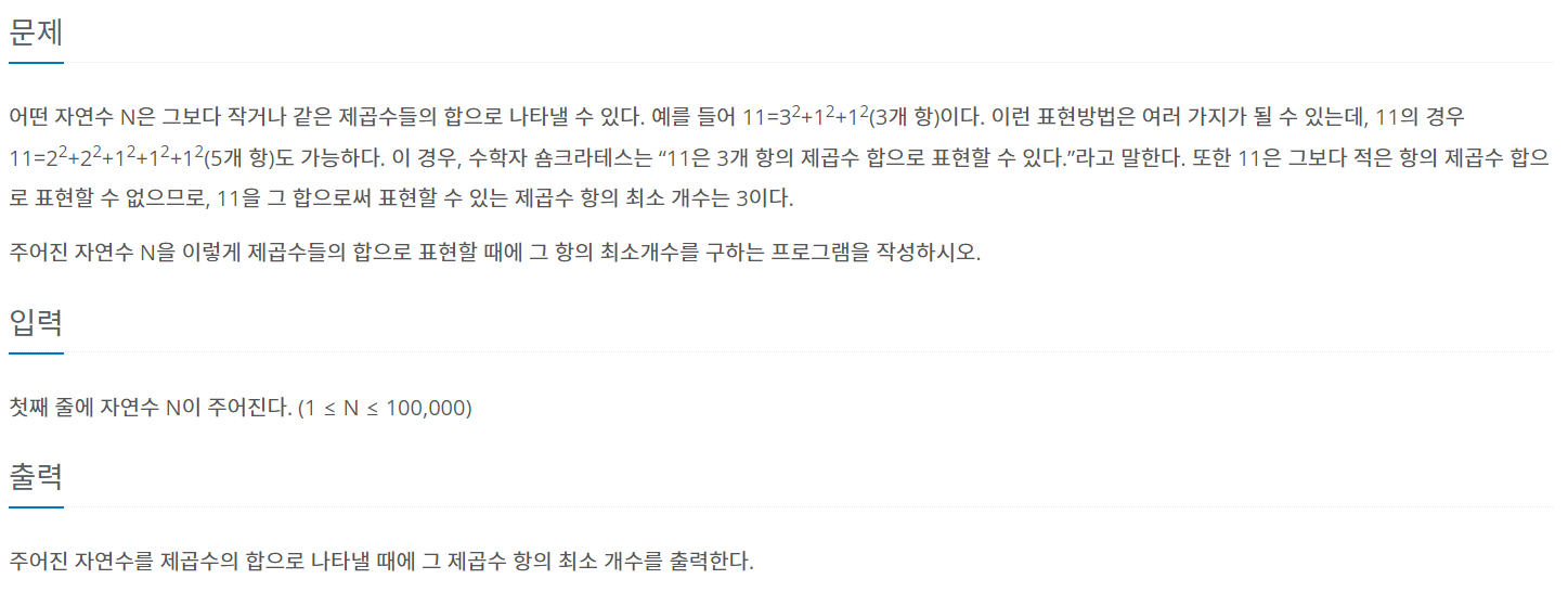https://www.acmicpc.net/problem/1699