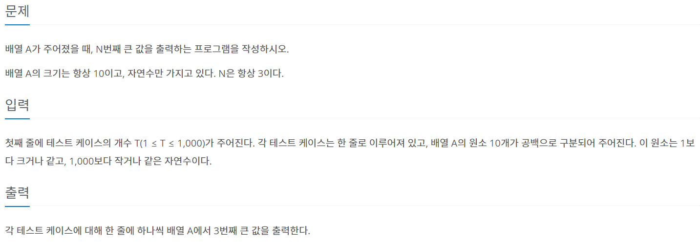 [Python] 백준 알고리즘 온라인 저지 2693 N번째 큰 수