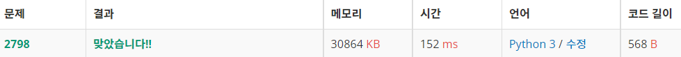 [Python] 백준 알고리즘 온라인 저지 2798번 블랙잭
